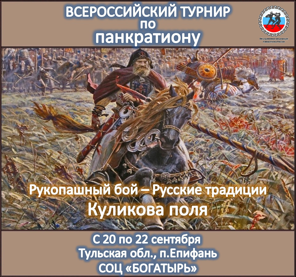Всероссийский турнир по спортивной борьбе (панкратион) «Куликово поле» (далее Соревнование) проводится согласно Единому календарному плану Минспорта РФ под № 39191. Соревнование проводится в соответствии с Правилами соревнований по виду спорта "спортивная борьба" (Приказ №541 от 14 июня 2018 года Минспорта РФ).